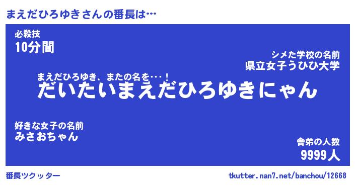 | ピコ太郎風あだ名 | 『マコ一郎』『ピマ二郎』『マエ太郎』 |