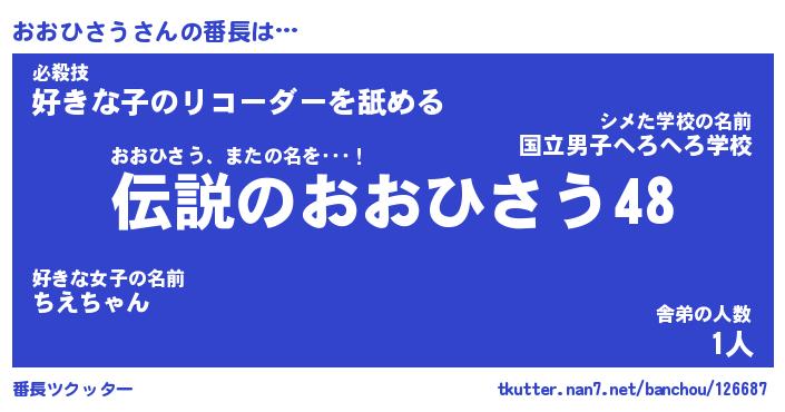 | 肩書あだ名 | 『おおひさう御曹司』『おおひさう班長』 |