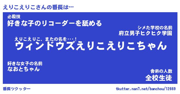 | 2回繰り返すあだ名 | 『えりえり』『ええりり』『にたにた』 |