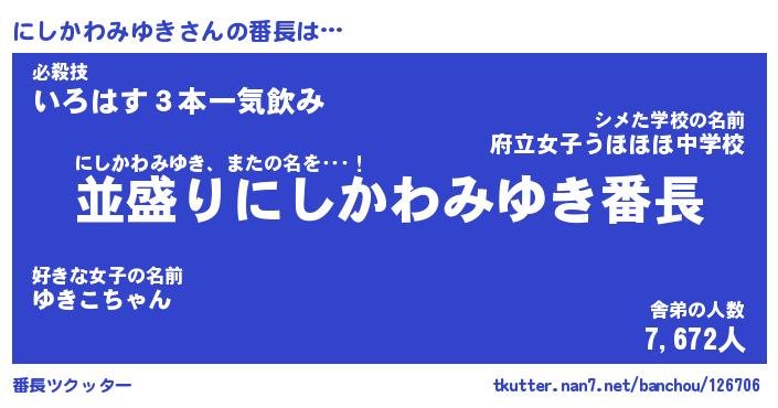 | 肩書あだ名 | 『にしかわみゆき社長』 |