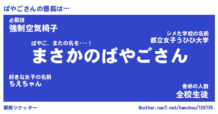 | 意味不明あだ名 | 『ペロリンばやご』『ばやごフォーエバー』 |