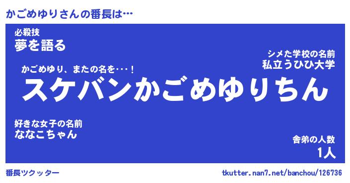 | ファンタジー風あだ名 | 『カゴフェル』『エターナルカゴメユリー』 |