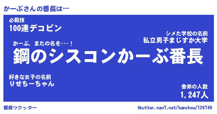 | ヘコむあだ名 | 『かーにゅー』『つくし』『かーを』 |