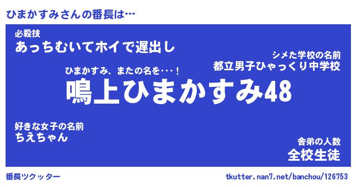 | ファンタジー風あだ名 | 『ヒマフェル』『エターナルヒマカスミー』 |