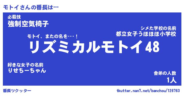 | ファンタジー風あだ名 | 『モトフェル』『エターナルモトイー』 |