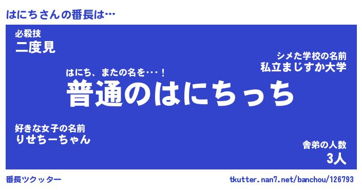 | 2回繰り返すあだ名 | 『はにはに』『ははにに』『ぬるぬる』 |