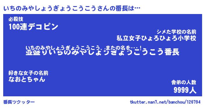 | ヒーロー風カッコイイあだ名 | 『スーパーイチノミヤショウギョウコウコウ』 |