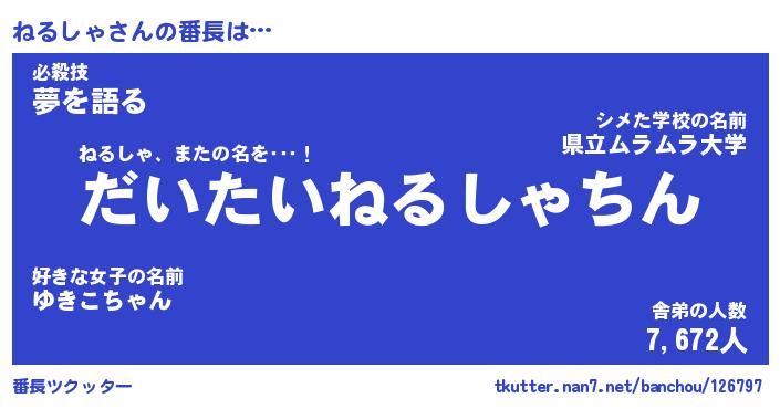 | 意味不明あだ名 | 『ペロリンねるしゃ』『永久保存ねるしゃ』 |