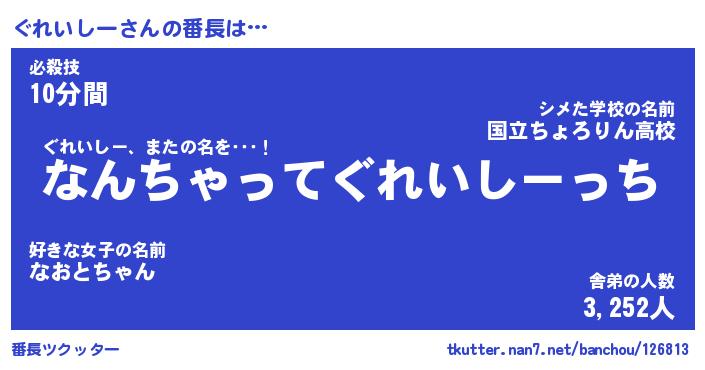 | 肩書あだ名 | 『ぐれいしー御曹司』『ぐれいしー塾長』 |