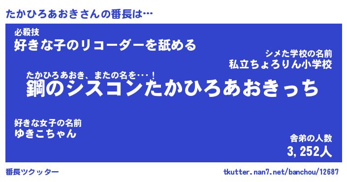 | 伝説のあだ名 | 『封印されしスナイパーたかひろあおき』 |