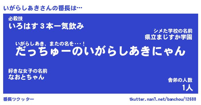 | ヒーロー風カッコイイあだ名 | 『スーパーイガラシアキ』『幻影騎士イガ』 |