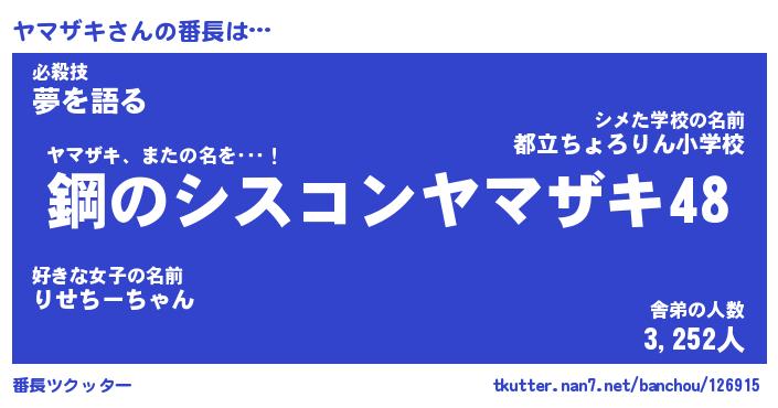 | 意味不明あだ名 | 『ペロリンヤマザキ』『永久保存ヤマザキ』 |