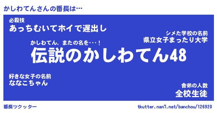 | ヒーロー風カッコイイあだ名 | 『スーパーカシワテン』『天弓騎士カシ』 |