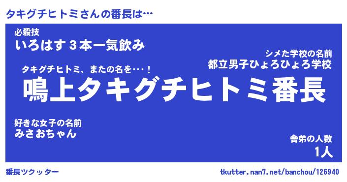 | ヘコむあだ名 | 『タキっふぃ~』『なまこ酢』 |