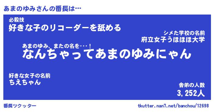 | ファンタジー風あだ名 | 『アマフェル』『エターナルアマノユミー』 |