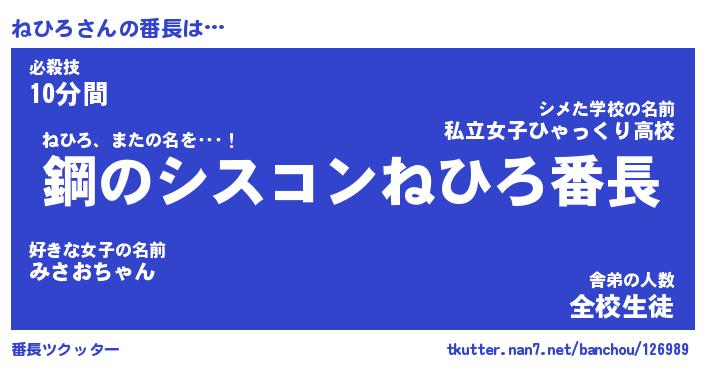 | ヒーロー風カッコイイあだ名 | 『スーパーネヒロ』『ウルトラねひろマン』 |