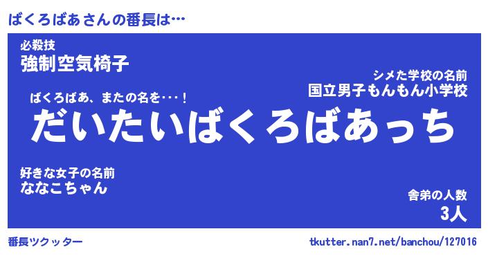 | ヘコむあだ名 | 『ばくもー』『牛乳』『ばくぷりん』 |