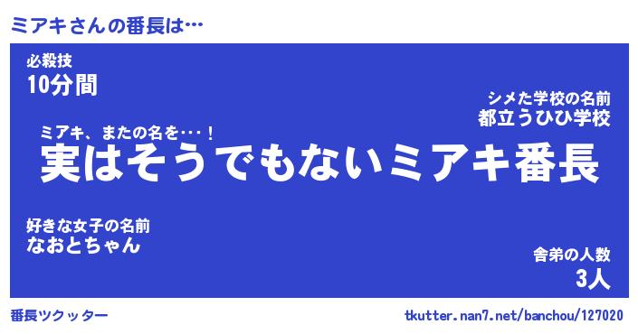 | 肩書あだ名 | 『ミアキ御曹司』『ミアキ総理大臣』 |