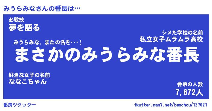 | 伝説のあだ名 | 『伝説のスナイパーみうらみな』 |