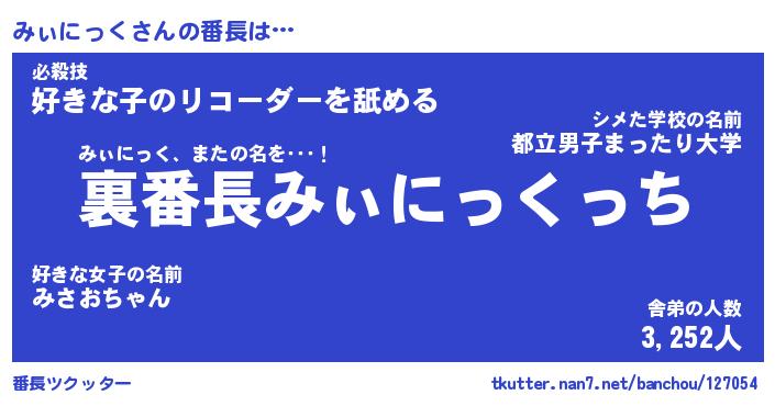 | 肩書あだ名 | 『みぃにっく御曹司』『みぃにっく団長』 |