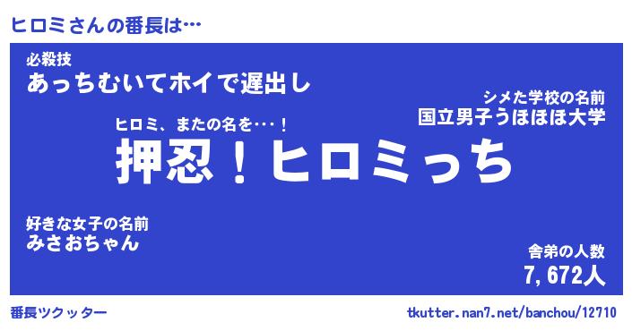 | ヒーロー風カッコイイあだ名 | 『スーパーヒロミ』『ウルトラヒロミマン』 |