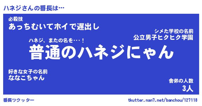 | 2回繰り返すあだ名 | 『ハネハネ』『ハハネネ』『ねとねと』 |