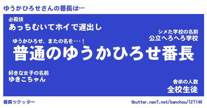 | ヒーロー風カッコイイあだ名 | 『スーパーユウカヒロセ』『天弓騎士ユウ』 |