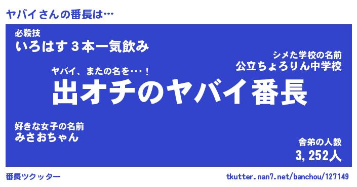 | ピコ太郎風あだ名 | 『ヤコ四郎』『ピヤ五郎』『ヤバ三郎』 |