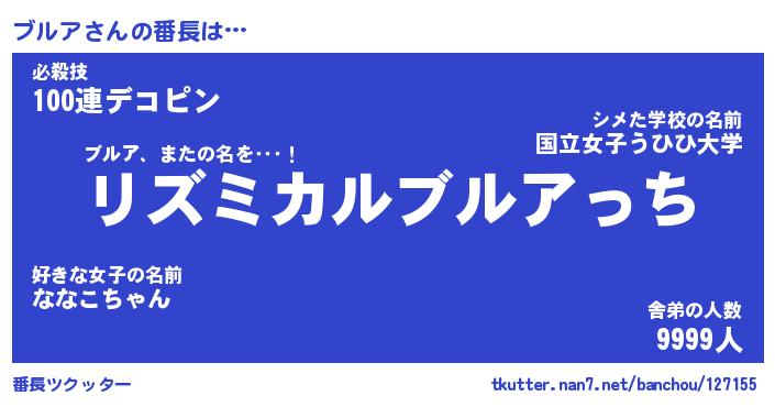 | ヒーロー風カッコイイあだ名 | 『スーパーブルア』『ウルトラブルアマン』 |