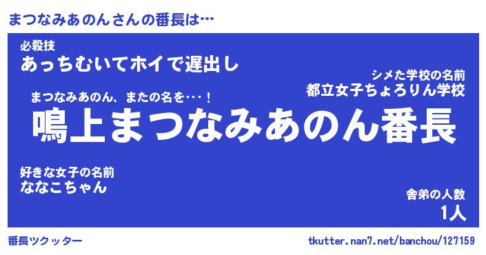 | 伝説のあだ名 | 『封印されしスナイパーまつなみあのん』 |
