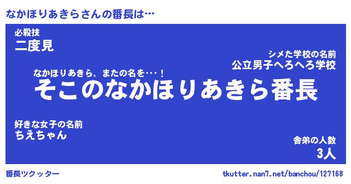 | 肩書あだ名 | 『なかほりあきら店長』 |