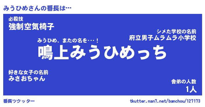 | ファンタジー風あだ名 | 『ミウフェル』『エターナルミウヒメー』 |