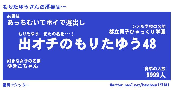 | ヘコむあだ名 | 『もりふぇ~』『つくし』『もり太郎』 |