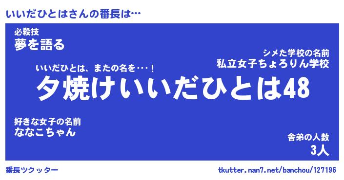| ヒーロー風カッコイイあだ名 | 『スーパーイイダヒトハ』『銀牙騎士イイ』 |