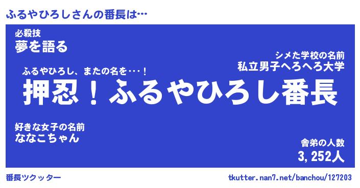 | 肩書あだ名 | 『ふるやひろし店長』『ふるやひろし団長』 |