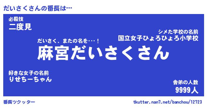 | 肩書あだ名 | 『だいさく店長』『だいさく国家主席』 |