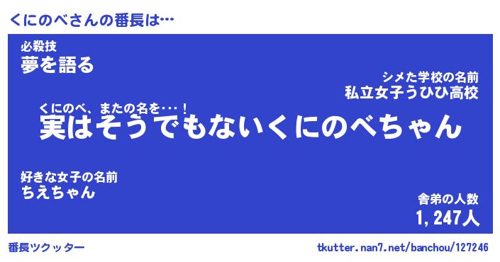 | 肩書あだ名 | 『くにのべ社長令嬢』『くにのべ大統領』 |