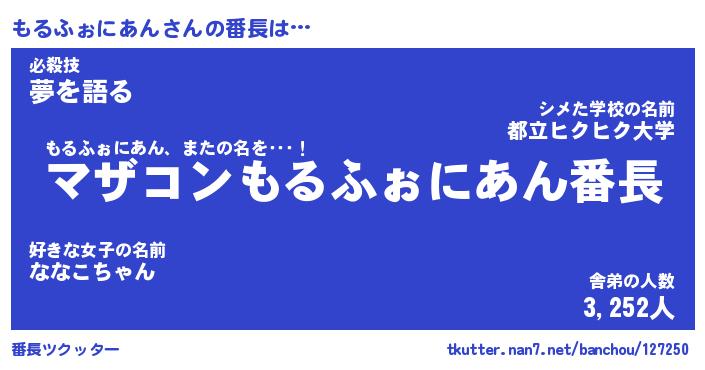 | 肩書あだ名 | 『もるふぉにあん御曹司』 |