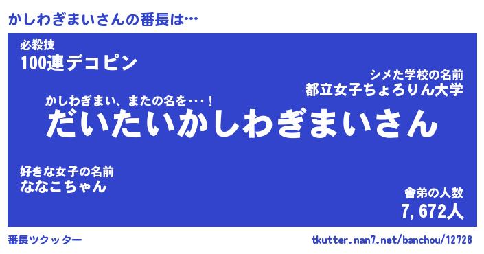 | 肩書あだ名 | 『かしわぎまい社長』『かしわぎまい団長』 |