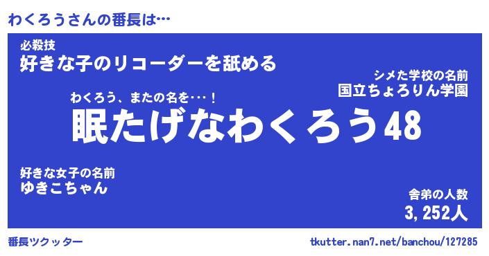 | 意味不明あだ名 | 『ペロリンわくろう』『永久保存わくろう』 |