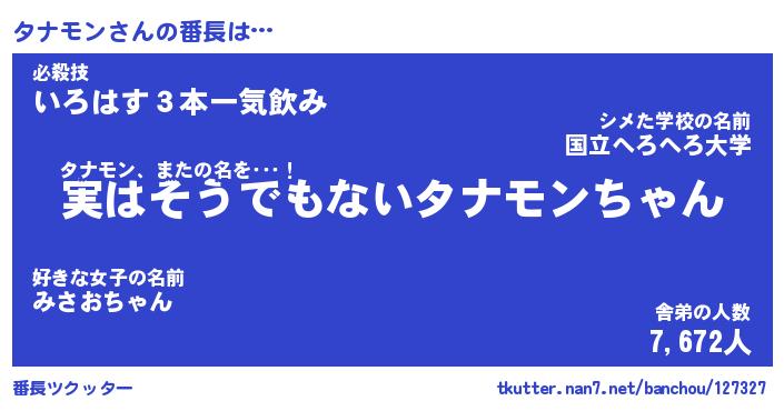 | 意味不明あだ名 | 『ペロリンタナモン』『永久保存タナモン』 |