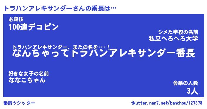 | ヒーロー風カッコイイあだ名 | 『スーパートラハンアレキサンダー』 |