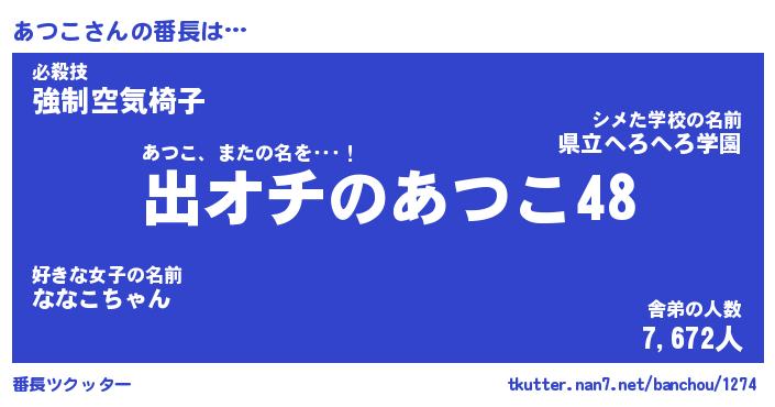 | ピコ太郎風あだ名 | 『アコ六郎』『ピア十郎』『アツ太郎』 |