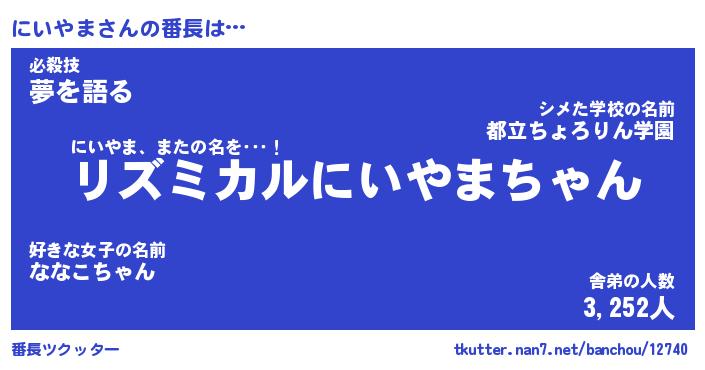 | 意味不明あだ名 | 『ペロリンにいやま』『永久保存にいやま』 |