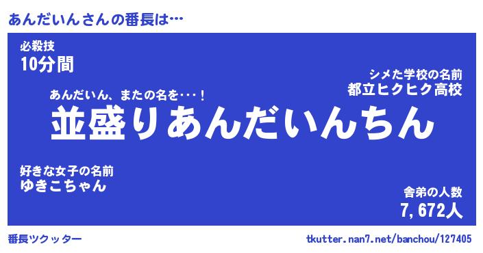 | 男性向けラノベタイトル風あだ名 | 『あんだいんの憂鬱』 |