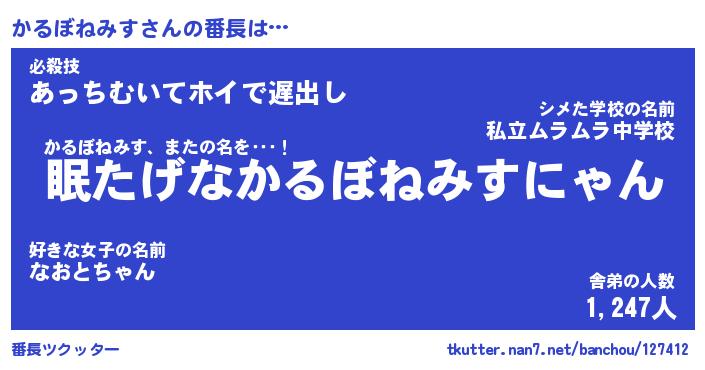 | 肩書あだ名 | 『かるぼねみすCEO』『かるぼねみす団長』 |