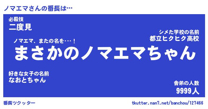 | ヒーロー風カッコイイあだ名 | 『スーパーノマエマ』『天弓騎士ノマ』 |