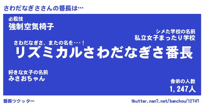 | ヘコむあだ名 | 『さわにゅー』『つくし』『さわっぺ』 |