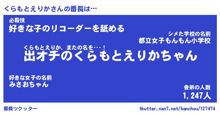 | 伝説のあだ名 | 『伝説のスナイパーくらもとえりか』 |