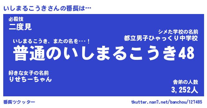| ピコ太郎風あだ名 | 『イコ二郎』『ピイ次郎』『イシ三郎』 |